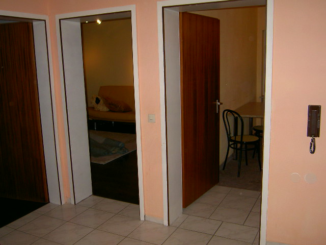Die Wohnung befindet sich ein Stockwerk über dem Erdboden, obwohl man vom Hauseingang ein